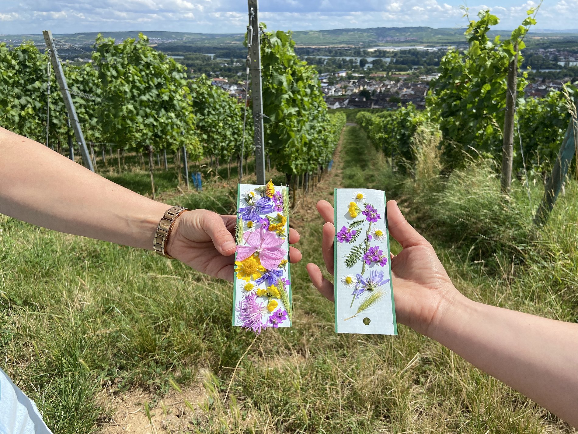 Co-Worker:innen auf neuen Wegen in den Weinbergen
